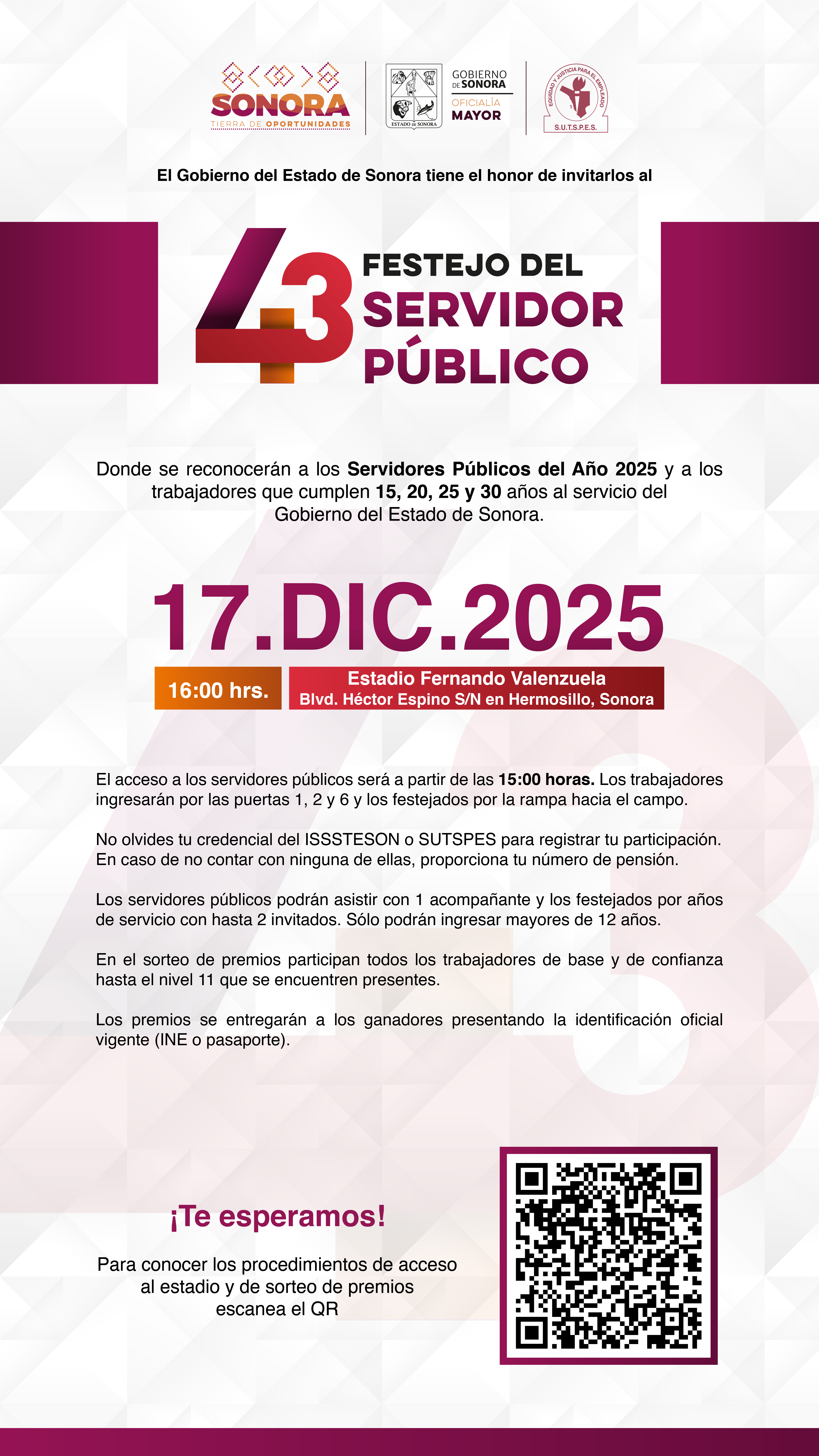 La Oficialía Mayor, a través de la Subsecretaría de Recursos Humanos, invita al XLIII Festejo del Servidor Público